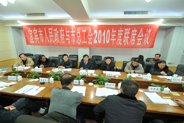 12月27日下午,宜宾市人民政府与市总工会联席会议在酒都饭店召开。会议议定定期举办宜宾市职工艺术节并在2011年举办首届。