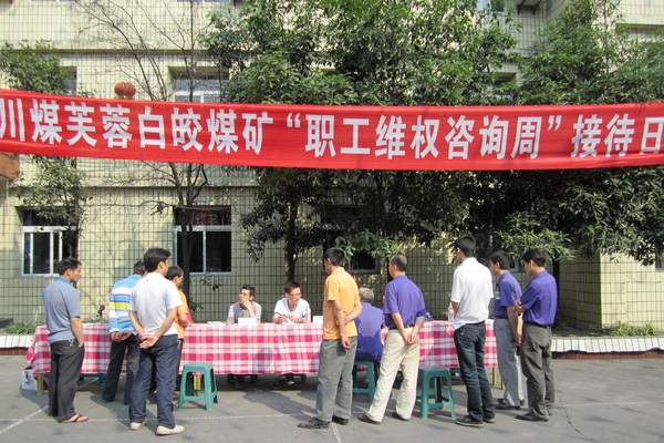 5月27日,川煤芙蓉公司白皎煤矿工会,根据芙蓉公司工会开展的“五月职工维权宣传月”和“职工维权咨询周”活动安排,在该矿机关办公大楼广场开展“职工维权咨询周”接待日活动。目的是履行工会维权基本职责,接待职工来访,解答凝惑,受理诉求,核实处理问题。当日,该矿接待来访职工56人,解答凝惑35个,当场处理职工提出的问题28项,另有3项调查核实后处理。